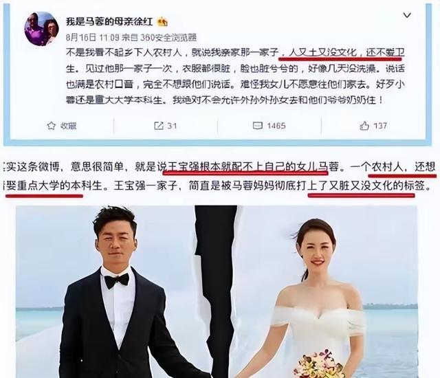 同时也对自己的亲家母和亲家公也是带有严重歧视的,经常会在自己的社交账号发一些门不当户不对的文案。