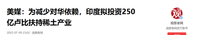 观察者网——美媒:为减少对华依赖,印度拟投资250亿卢比扶持稀土产业——2025-07-09