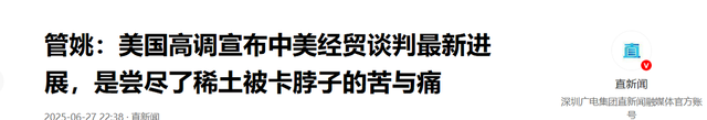 直新闻——管姚:美国高调宣布中美经贸谈判最新进展,是尝尽了稀土被卡脖子的苦与痛——2025-06-27