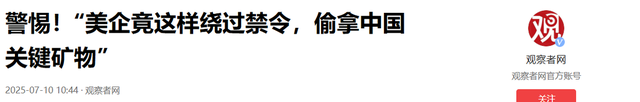 观察者网——警惕!“美企竟这样绕过禁令,偷拿中国关键矿物”——2025-07-10