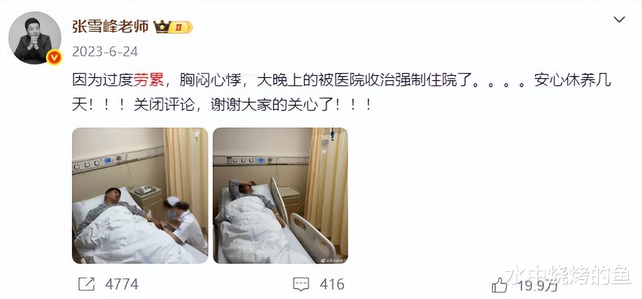 2023年,张雪峰胸闷心悸,因为过度劳累而被强制住院了,其实那个时候身体已经发出了求救信号。