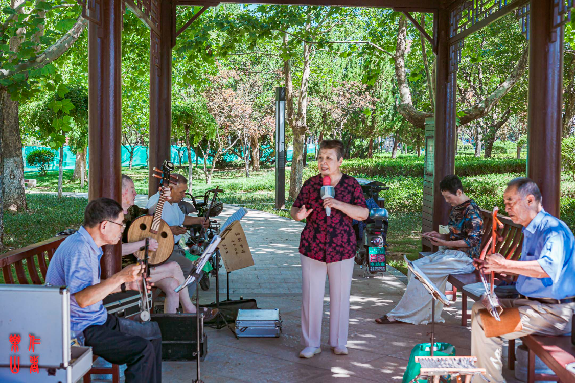 再来到山水一城对面的水景公园,沂源县最著名的京剧票友侯氏姐妹,正在著名京胡演奏家房先生,还有刘先生、宋先生的精心伴奏下,演唱样板戏《红灯记》选段。实事求是讲,旗手李进和于会泳先生锻造的现代京剧样板戏不愧是当代中国戏剧的巅峰之作,唱段通俗易懂,朗朗上口,老少皆宜,久唱不衰!再也难以逾越了……