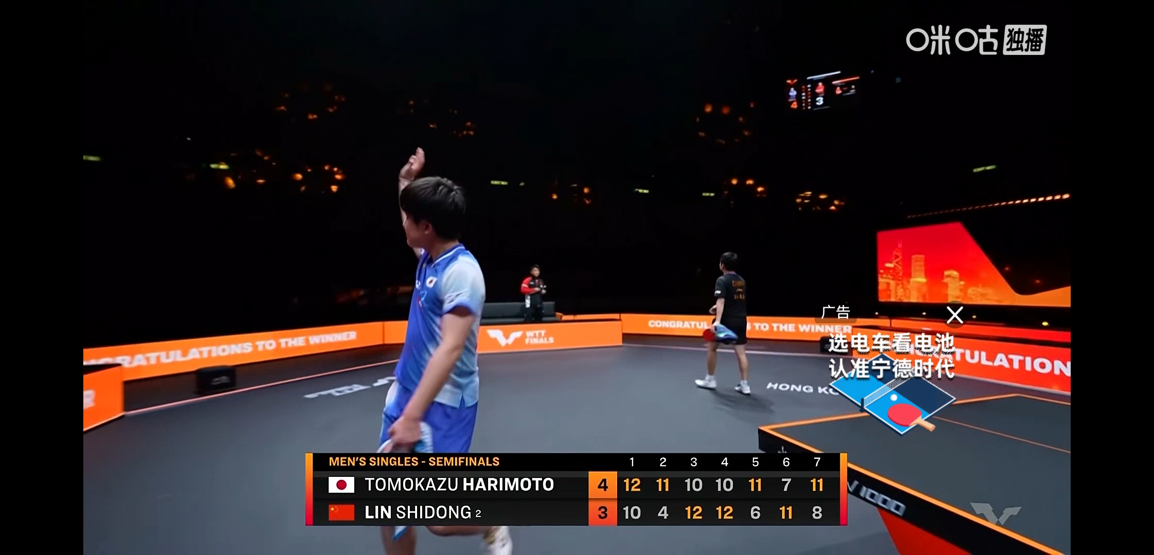 北京时间12月14日,WTT香港总决赛男单半决赛林诗栋与张本智和。
