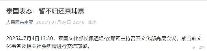 然而当提到近期有关“泰国拟归还20件柬埔寨文物”的网络消息时,她特别澄清:该消息并不属实,属于误导性报道。
