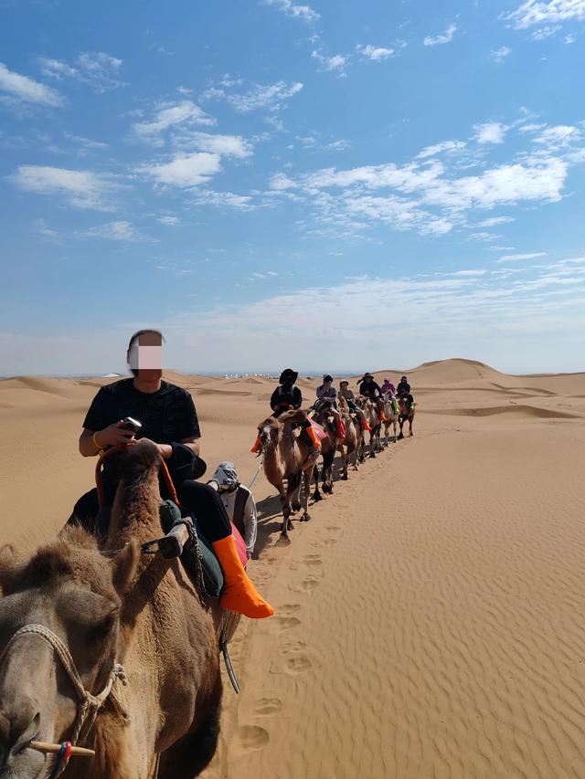 接着去骑骆驼,大约骑20分钟左右,骆驼又听话又温顺,六个一队。