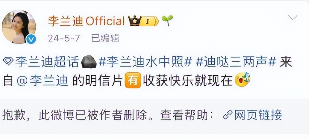 次日清晨的时候,张新成更新社交平台,照片恰好是李兰迪去年五月份爬山照的同款。