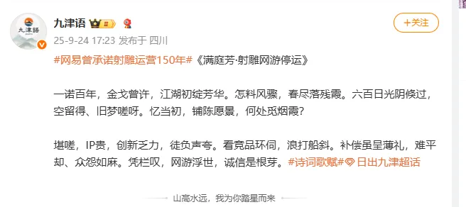 正如有网友对该事件词作《满庭芳》所叹:“一诺百年,金戈曾许……网游浮世,诚信是根芽。” 这场戛然而止的江湖梦,终成中国游戏业过度营销与产品力脱节的缩影……