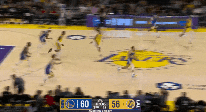 NBA常规赛,湖人对阵勇士的比赛正在进行中。