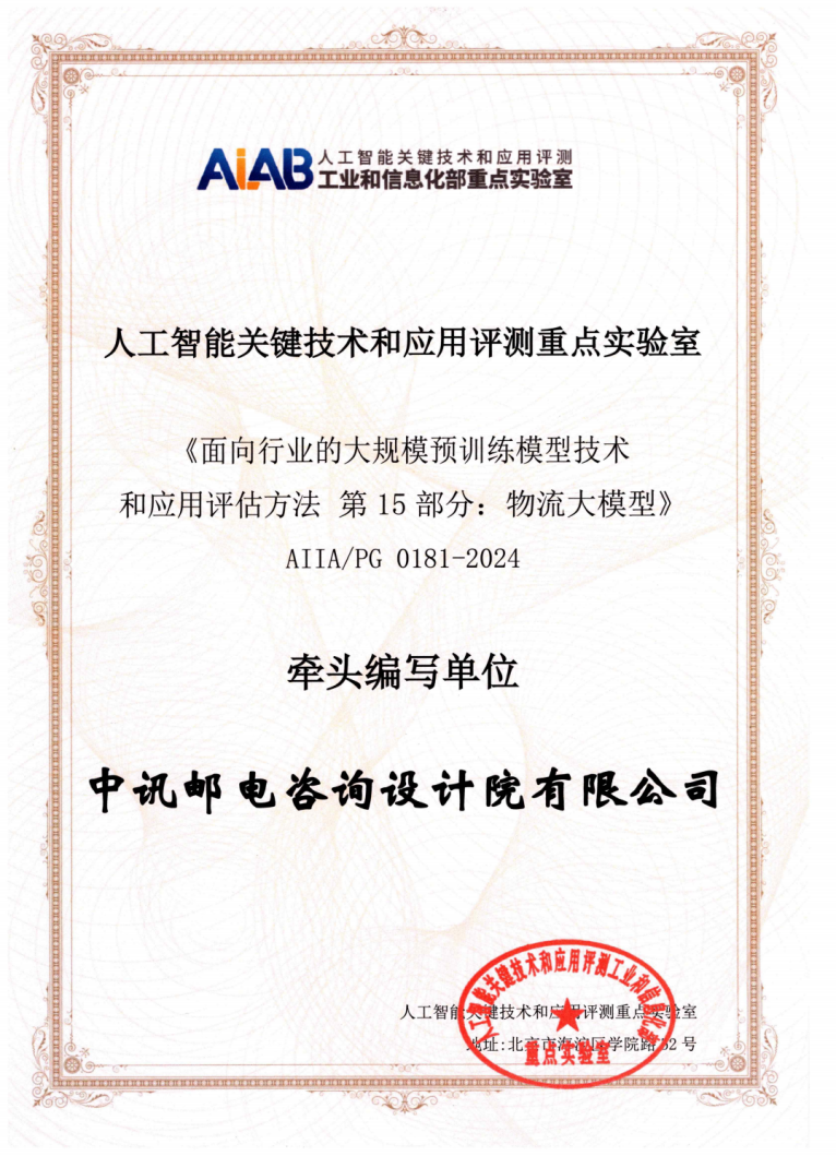 中国联通不仅在大模型技术研发方面取得了显著成就,还积极推动行业标准化工作。由中讯院牵头编写国内首个物流大模型标准——《面向行业的大规模预训练模型技术和应用评估方法第15部分:物流大模型》,涵盖模型开发、模型能力、模型运营、模型应用和可信要求五个部分,填补了大模型在物流行业应用标准领域的空白。