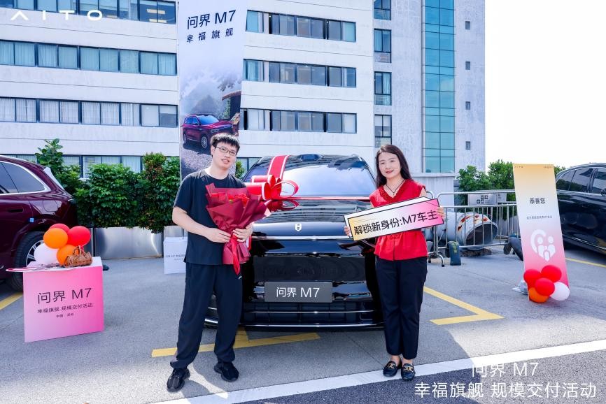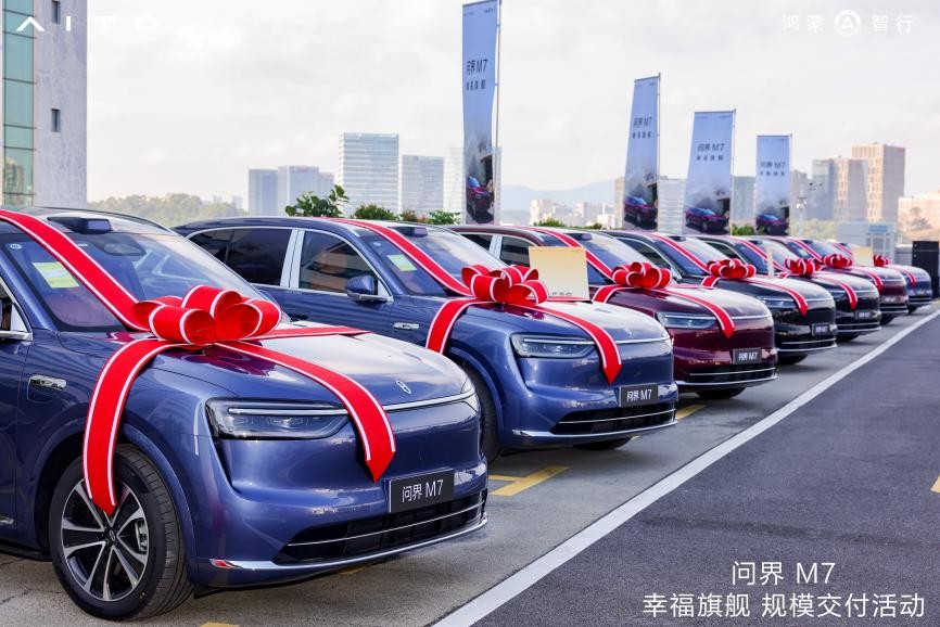 今日(2025年9月30日,中国深圳),问界M7 幸福旗舰 规模交付仪式于深圳隆重启幕。众多新晋车主与家人挚友齐聚一堂,在充满温情与科技感的氛围中,共同见证了一场以“幸福”为名的交付盛典,标志着问界M7这款智慧出行伙伴,正式驶入更多用户的精彩生活。