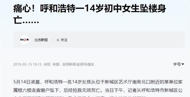 五月,内蒙古呼和浩特市,一位平日里成绩十分出众的初二女生,仅仅只是在一次考试中意外失利后,便遭到了家长的严厉批评。