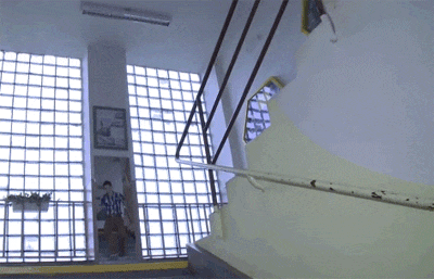 小伙子,这次就长个记性,下次还是一步一步下楼梯吧!