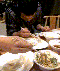 朋友,是吃困了吗,这个饺子有这么难夹吗?