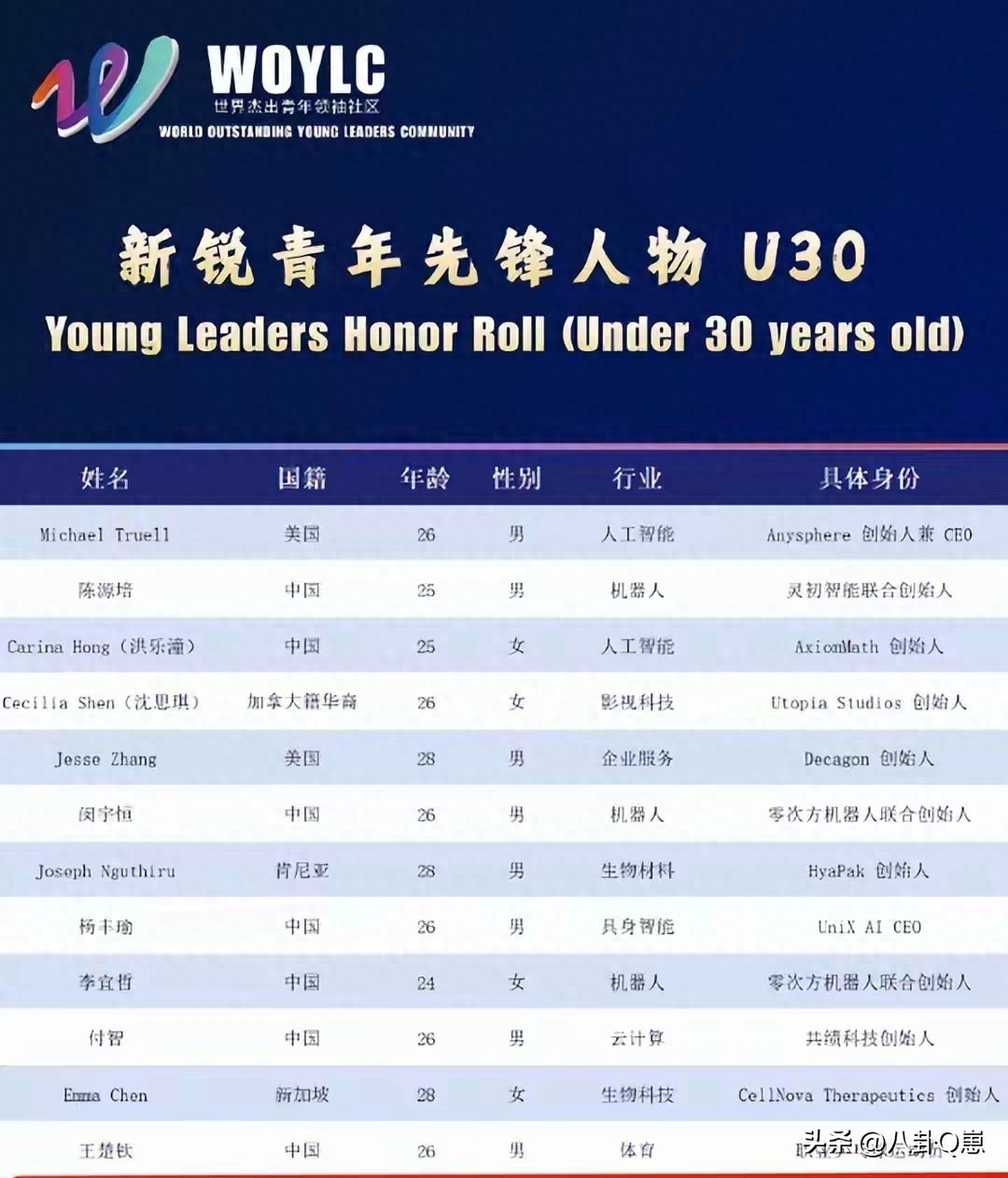 这不2026年新锐青年先锋人物(U30)公布的提名名单里面,
