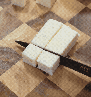 这个步骤,一定要刀快手稳。小块一点,等会儿更酥脆。太大块不容易炸透。一刀下去,大小随意,差不多就行,别纠结。