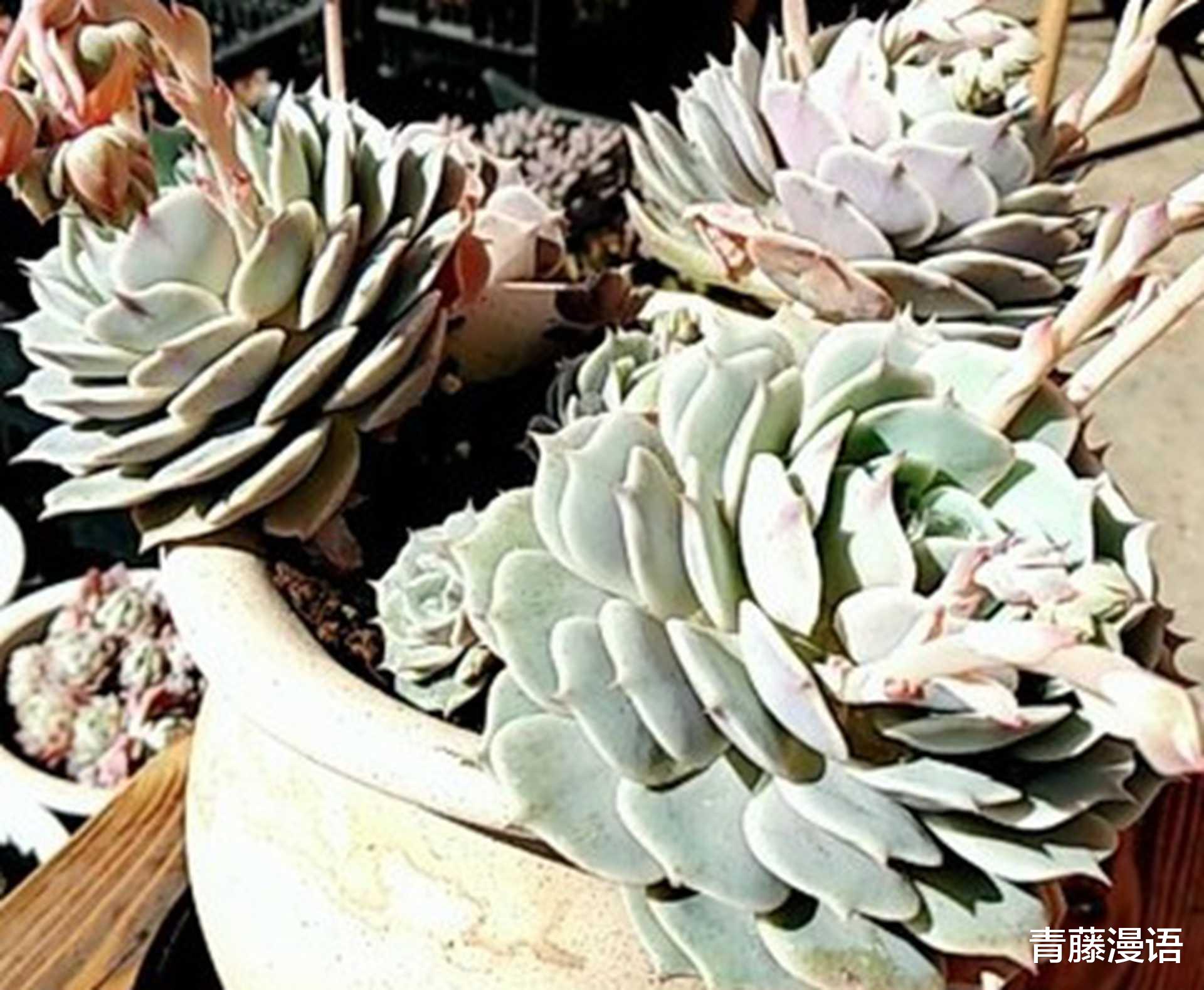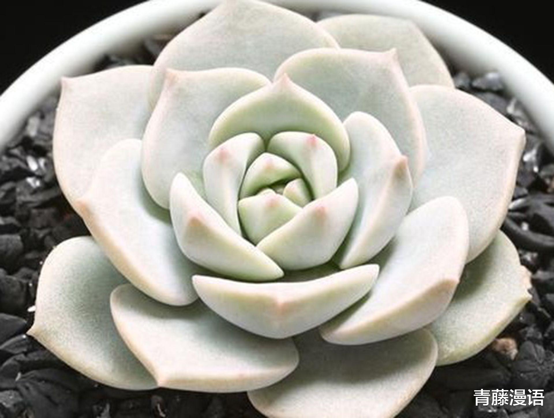 在静夜的种植过程中,不同品种之间也有一些对比。比如说和普米拉多肉相比,普米拉的叶片比静夜要厚实一些,而且普米拉的生长速度会慢一点,它大概需要三个月左右才能从这个状态长到下一个比较明显的变化状态。还有玉扇多肉,玉扇的形状和静夜差别很大,它是半透明的叶片抱成的扇形,对水分的要求和静夜也不同,玉扇更怕积水,浇水多了很容易烂根,而静夜相对来说对水分的适应范围稍微广一点。再比如蓝丝万代,它的颜色在不同季节变化很大,静夜的颜色变化相对较小。蓝丝万代的叶片也比较长,生长起来比较分散,和静夜那种紧凑的莲座状是不一样的。