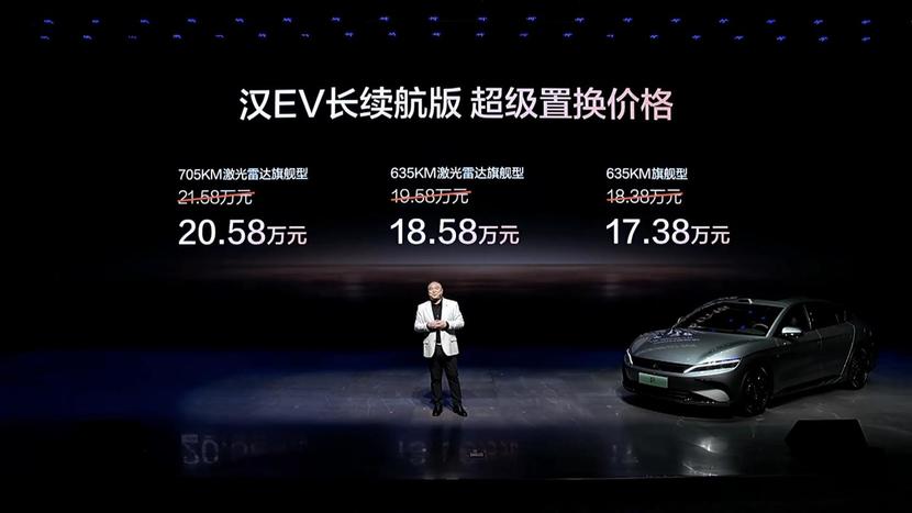 此次,汉DM-i长续航版共推出4款车型,补贴后售价15.98万~18.98万元;汉EV长续航版共推出3款车型,补贴后售价17.38万~20.58万元(10月31日前完成购车可享1万元超级置换补贴)。同时,比亚迪还为用户准备了包含置换补贴在内的至高价值3.8万元七大礼遇。
