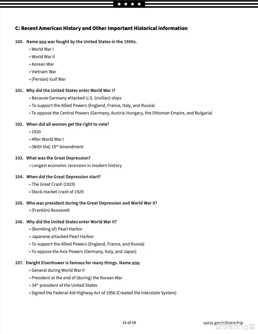 ➢ 美国历史和政府知识: 通过公民知识测试来证明对美国历史和政府有基本的了解