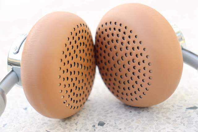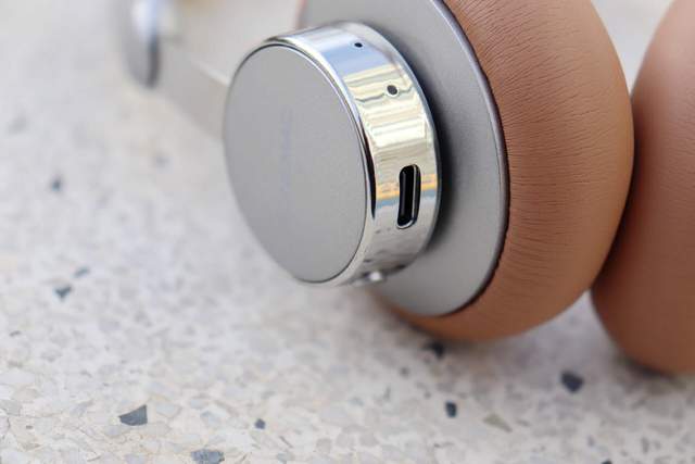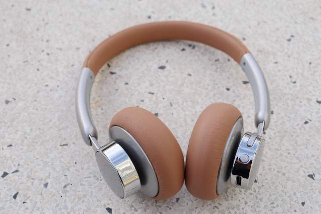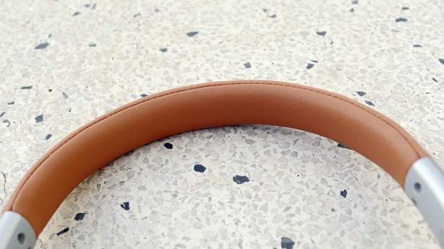 取出耳机,唐麦H8耳机整体颜色为银色和复古的黄褐色,耳梁和耳罩处为复古的黄褐色的人工蛋白皮面膜设计,仿皮纹,柔软又亲肤,耳机腔和耳机伸缩处为金属银色的,再搭配超哑光工艺,复古感拉满,彰显出浓郁的复古风。