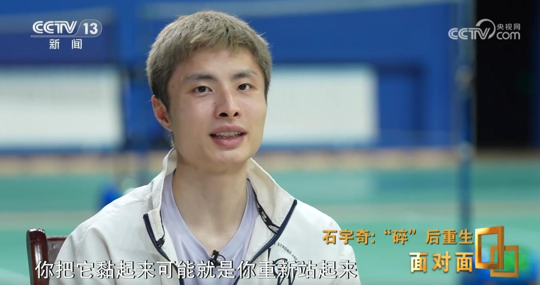 石宇奇:竞技体育就是这样,因为冠军只有一个。都想去当最后一个没砸碎的“鸡蛋”。但是一筐“鸡蛋”砸到墙上,有哪个真的不会碎吗?所以很难挑出一个很坚硬的“鸡蛋”出来。所以只能通过不断黏合、重复,经历困难,有可能你会得到你想要的目标,也许你会一直碎在那里。黏起来,就是重新站起来、重新接受自我,如果没有黏起来,就是放弃了。