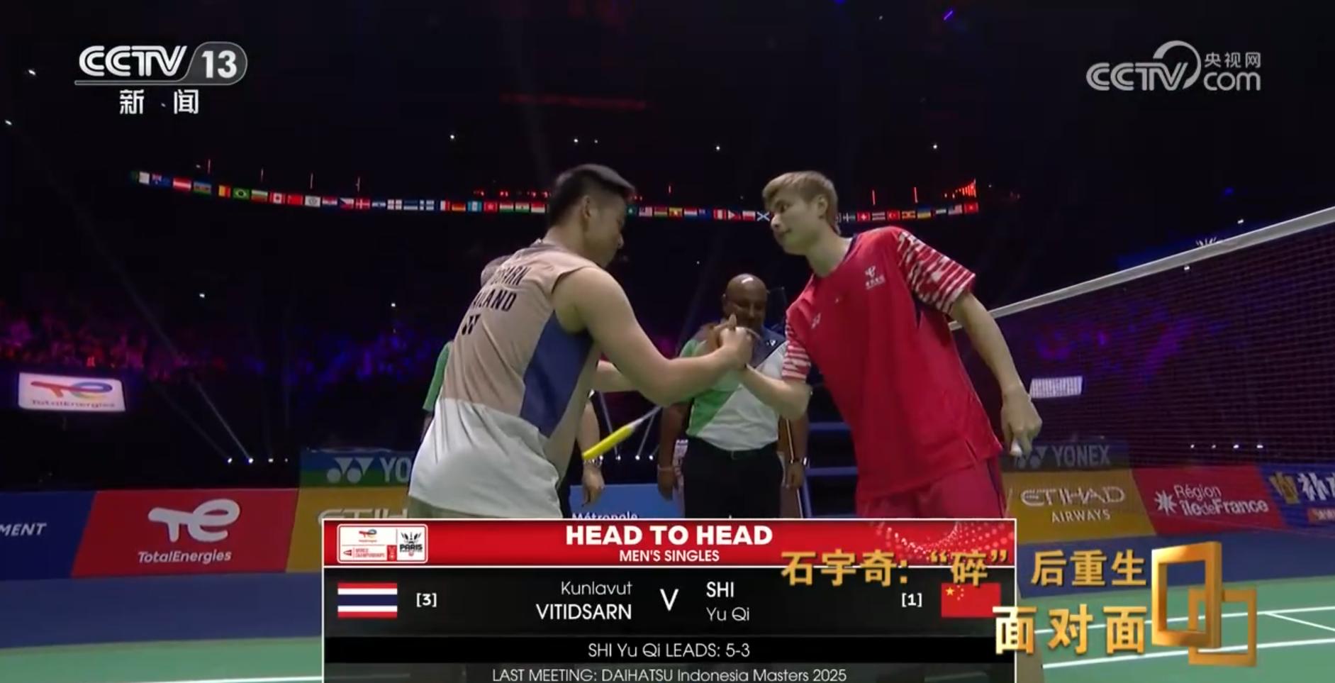 2025年,石宇奇再度来到巴黎,在世锦赛的决赛赛场,他和把他挡在奥运四强门外的昆拉武特再度相遇。