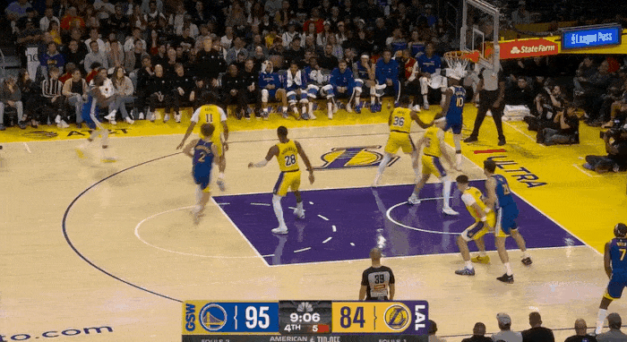NBA常规赛,湖人对阵勇士的比赛正在进行中。