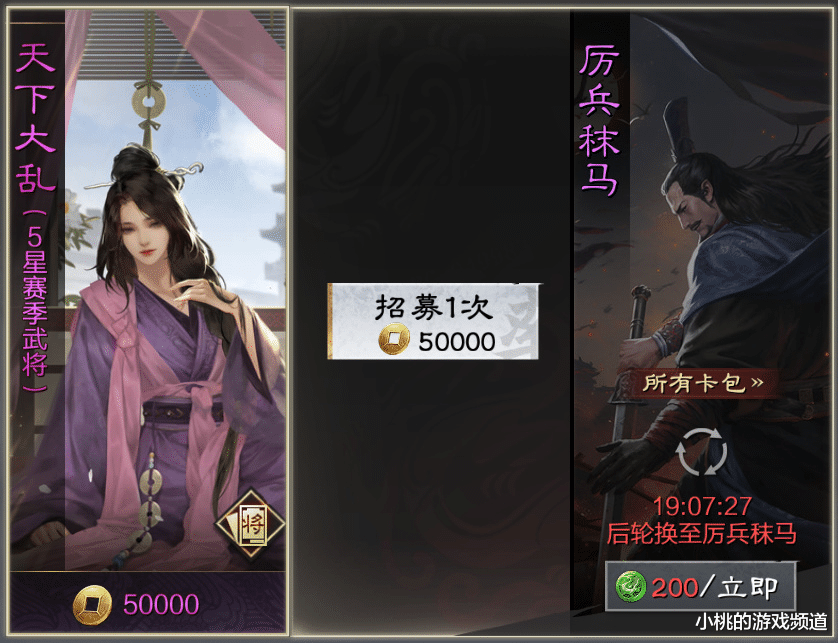 "不花钱抽卡"顾名思义,玩家可以不花钱,只靠游戏中的铜币抽卡,铜币可以在游戏内获得。而且全五星的卡池也都是有保底的,每个卡池抽到一定次数可以触发保底自选武将,主打的就是“五星上将人人都有”,开启SLG的“公平策略”时代。