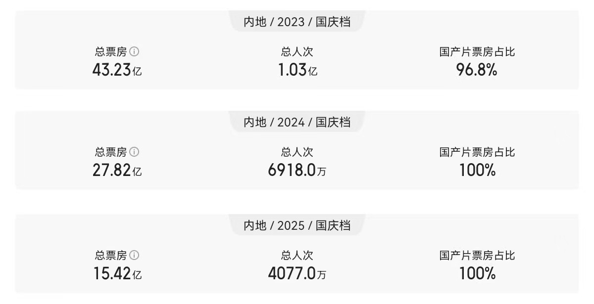 相当于国庆档的票房总成绩,还不如往年单部电影的票房高。