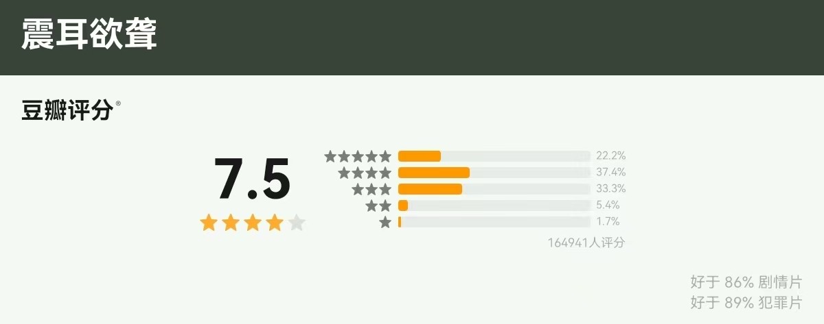 但这几年悬疑犯罪类型的作品越来越多,《震耳欲聋》就略显平淡了。