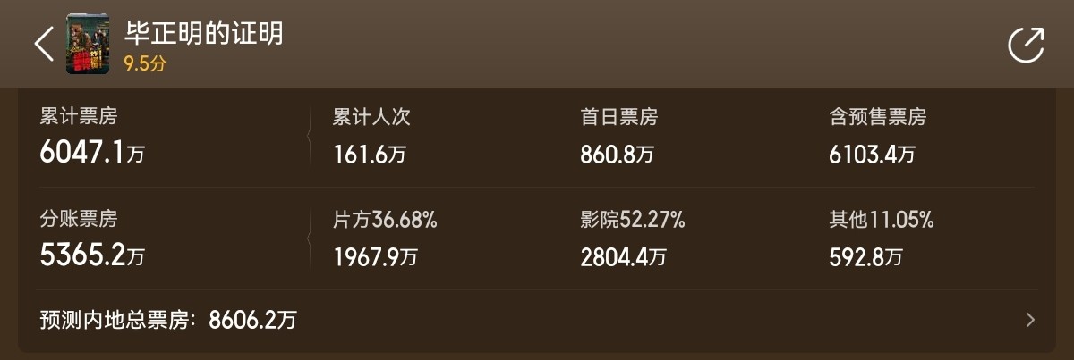 第六部,《毕正明的证明》,票房6000万