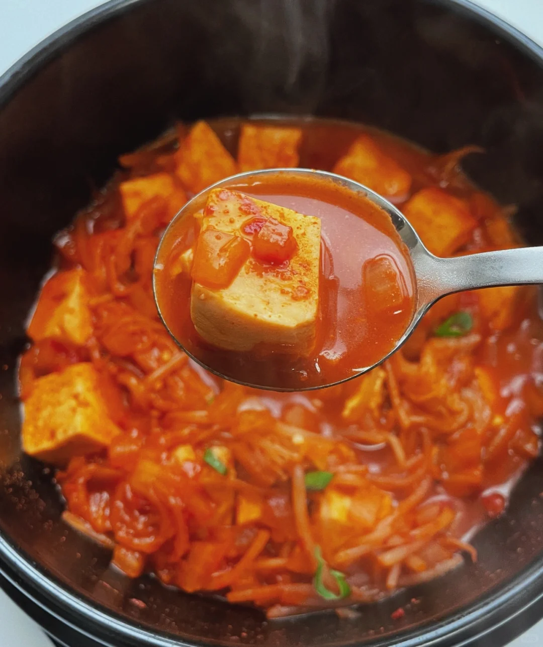这碗韩式泡菜豆腐汤真的太上头了!酸辣开胃、热气腾腾,配上一碗白米饭,简直是治愈系料理的顶配!为了它,我双十一还专门入手了一个小砂锅,仪式感直接拉满🔥