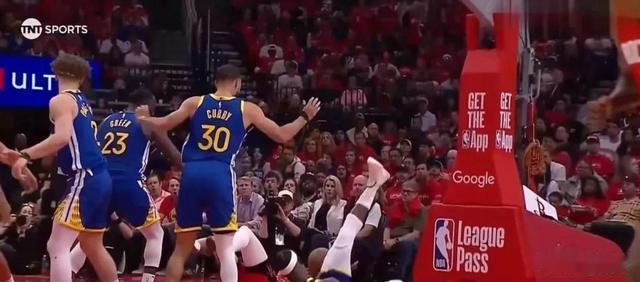 末节勇士垂死挣扎,库里复出后连得5分打停火箭。眼看分差有缩小迹象,追梦·格林又开启了他的"表演时间"。