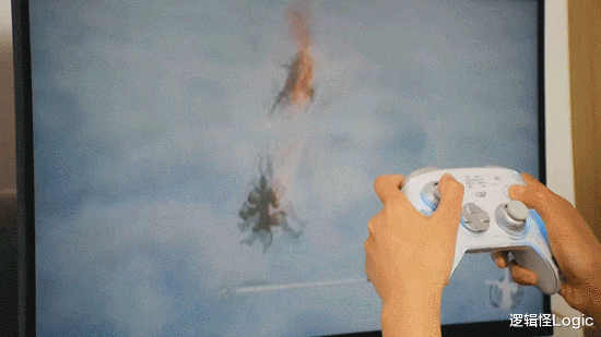 在《地平线5》中,手柄的左右扳机分别对应油门和刹车,阻尼效果很细腻,提供了很高的沉浸式体验感觉。正常行驶时,扳机的反馈丝滑又真实,让加速与刹车的操作变得异常自然。尤其在急加速或碰撞场景下,右扳机提供的渐进式阻力变化,完美模拟了实际驾驶中的油门响应和冲击反馈,使每一次操作都充满细节和情绪。手柄还能根据不同类型的车辆调整反馈力度,超跑的轻盈与越野车的厚重都能精准体现。这一切得益于手柄的AI自适应双切扳机技术,它不仅提升了驾驶操作的手感真实度,还通过高算力和优化设计,确保无线连接下的响应速度和精确度,使得整个驾驶体验从简单的操作进化为一种享受。