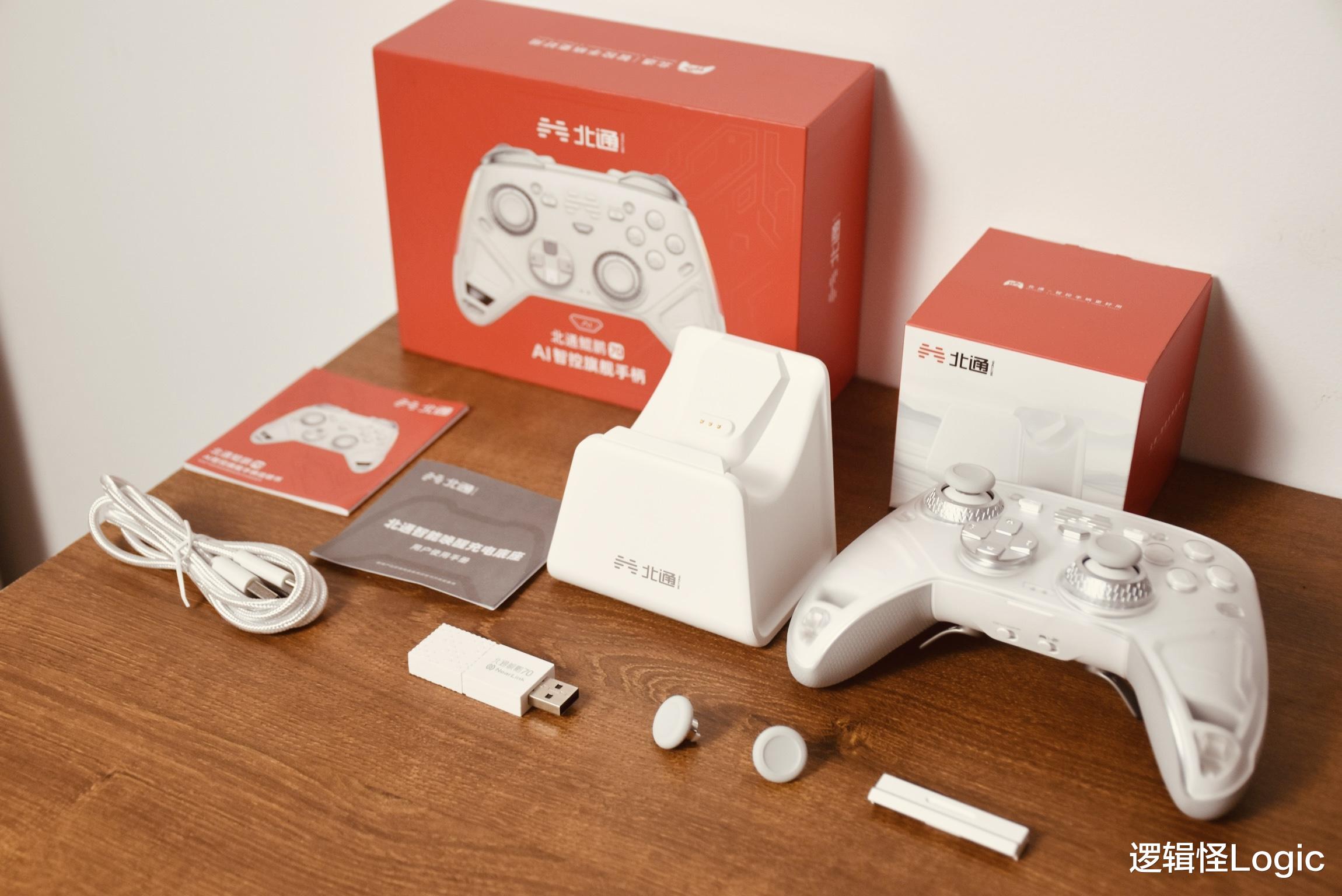 我入手的是手柄+充电底座套装,产品标配:手柄、充电底座、Type-C充电线、接收器、备用摇杆、充电底座配件、说明书。
