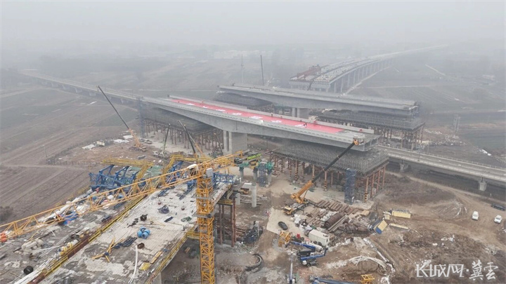 京雄高速二期上跨京广高速铁路工程施工现场。河北省交通运输厅 供图