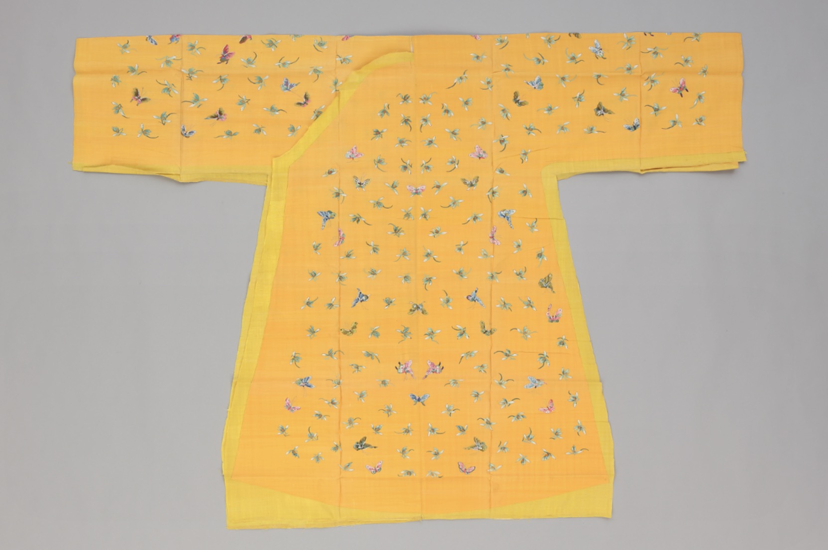 杏黄色缂丝蝶兰纹袍料 图片来源:故宫博物院官网