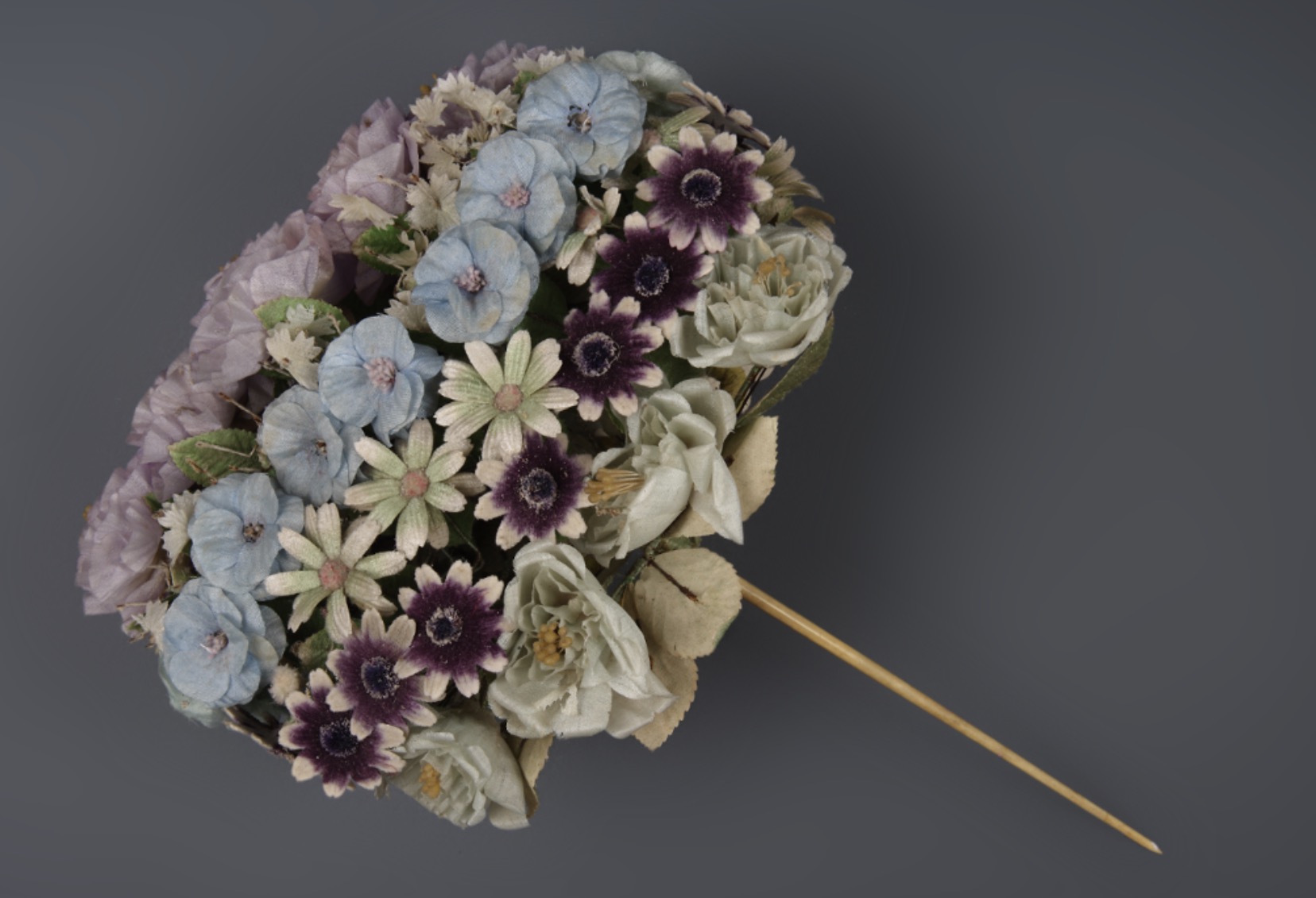 钿子是清代满洲贵族妇女特有的首饰,可在日常生活中佩戴,也可以在正式场合里搭配礼服。它以绒或缎的材质为内胎,用银丝或铜丝搭建框架,并镶嵌有各种珠花等。