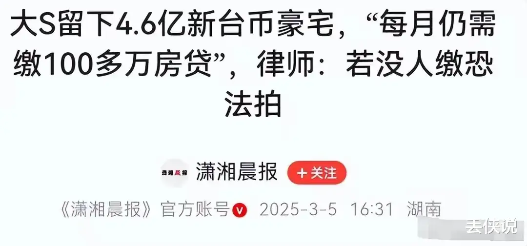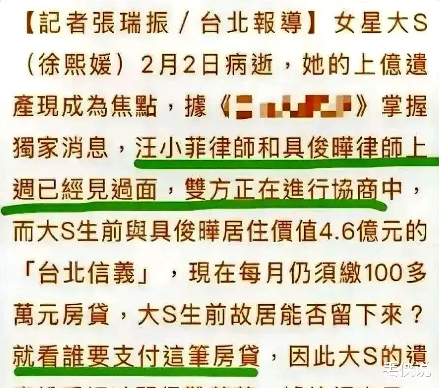 据知情人士透露,大S生前每月亲自处理豪宅的这些费用,现在因为房产归属问题还没具体落实,所以具俊晔和汪小菲谁也不肯还贷款。
