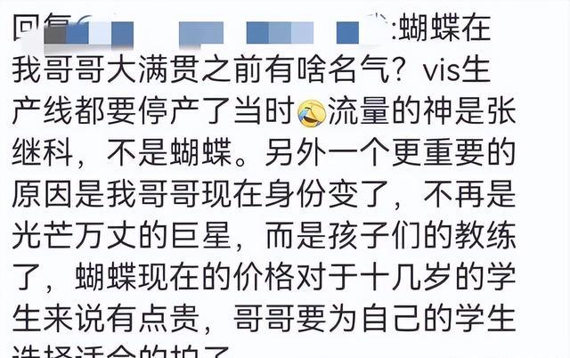 其实意思就是,蝴蝶今天的地位全靠张继科,因为在张继科给它代言之前,蝴蝶都快撑不下去了。