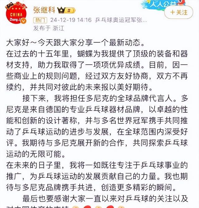 这消息挺让人意外的,张继科和蝴蝶合作了15年,就算张继科遇到风波,他们也没放弃彼此。