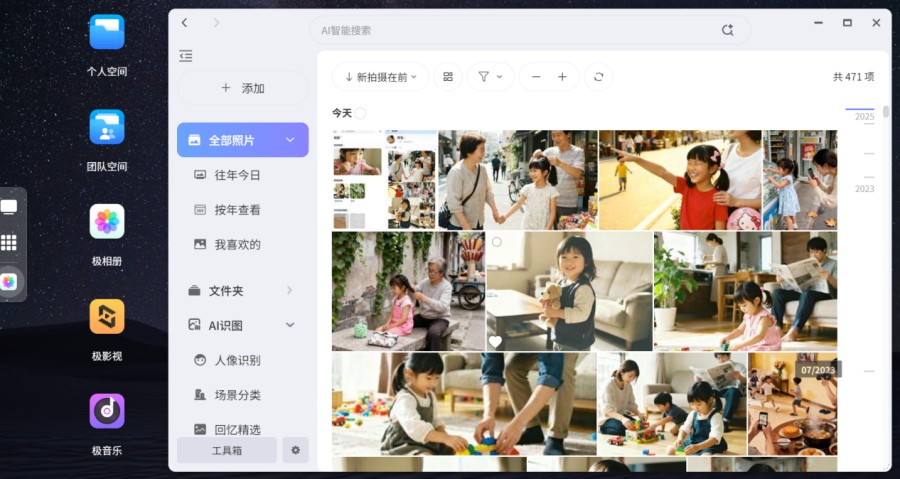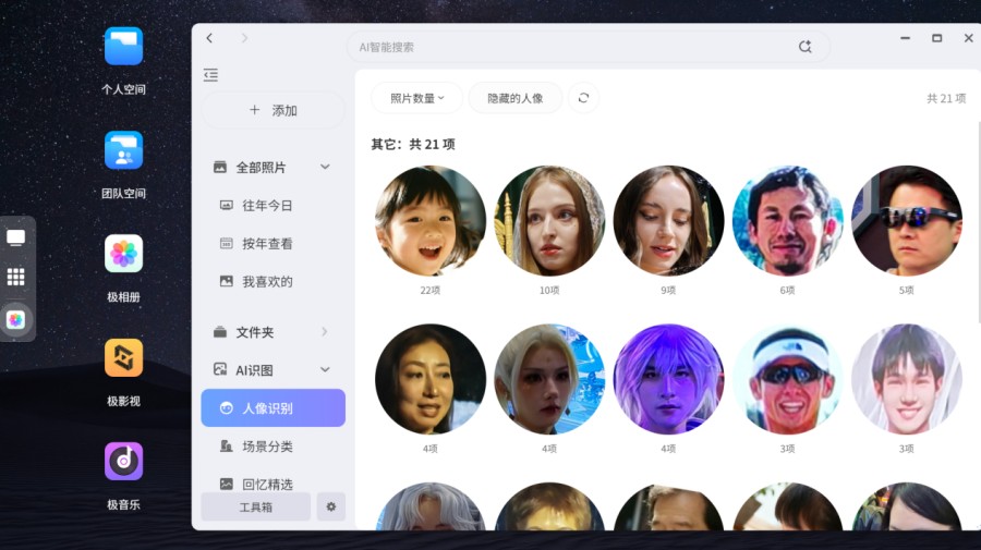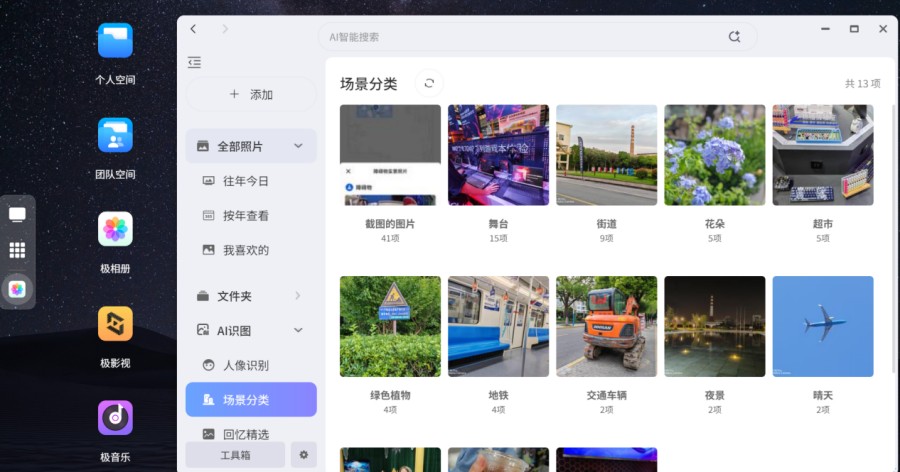 这里就要提到极相册了,这也是让使用者情绪价值拉满的一项功能。可以看到AI识图功能、涉及到人像识别、场景分类、宝宝相册等等,因为有了AI加持,实际体验非常好。