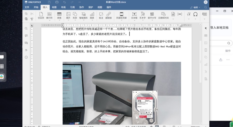 除了存储家庭数据,极空间Z4Pro+还能化身家庭办公中心。中秋假期若需临时处理工作文档,通过文档编辑功能,可直接在本地编辑Word、Excel、PPT等文件,支持多人协作与版本回溯,即使离线状态下也能正常操作,数据全程存储在本地硬盘中,隐私安全无虞。