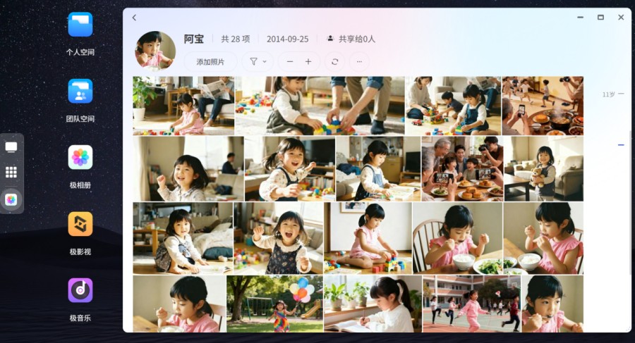 测试中还发现,为了便于长辈使用,极空间还提供了亲情账号功能满足更多家庭用户。想象这样一幅画面,在中秋团聚后,父母、子女可分别通过独立账号登录,将手机相册同步至私有云,避免了传统存储中照片混存、难以分类的尴尬。孩子的成长记录、长辈的老照片也可独立管理,而家庭共享相册功能又能一键分享精选瞬间,实现私密与共享的灵活平衡。