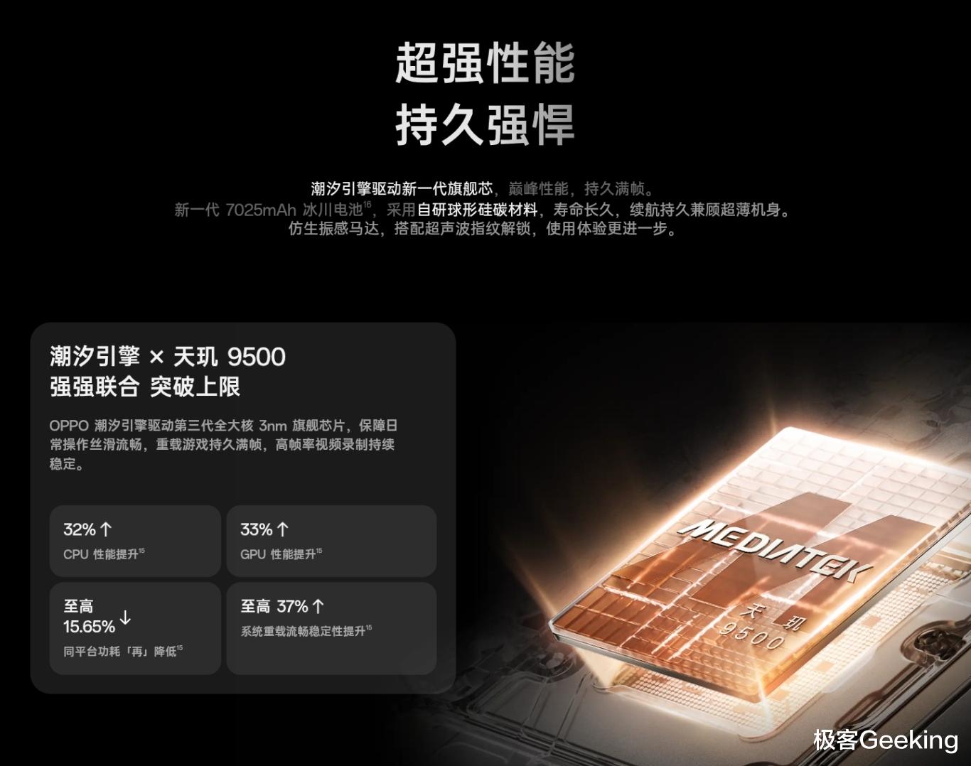 性能:天玑9500 + LPDDR5X + UFS 4.1