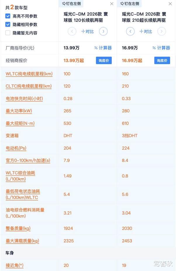 9月29日,星途旗下的插混中级SUV——星途瑶光醒来了改款上市。2026款星途瑶光C-DM寰球版共推出3款车型,售价区间从13.99万到18.99万元,据了解,三款车型的CLTC纯电续航均有所不同,分别为120km、210km以及200km,而且该车在国外的售价是国内售价的两倍左右。那么新款与老款相比有何差异?三款车型哪款最应该选?我们就一起来看一看。