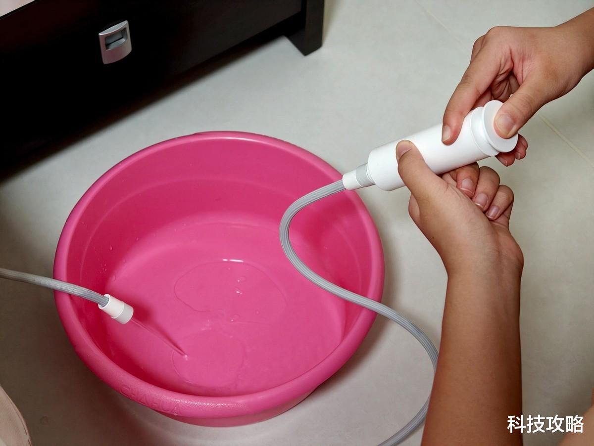 一端打气另一端放置在水盆中,仅需一两分钟就可以将水暖毯中的水排出,是不是觉得很方便。