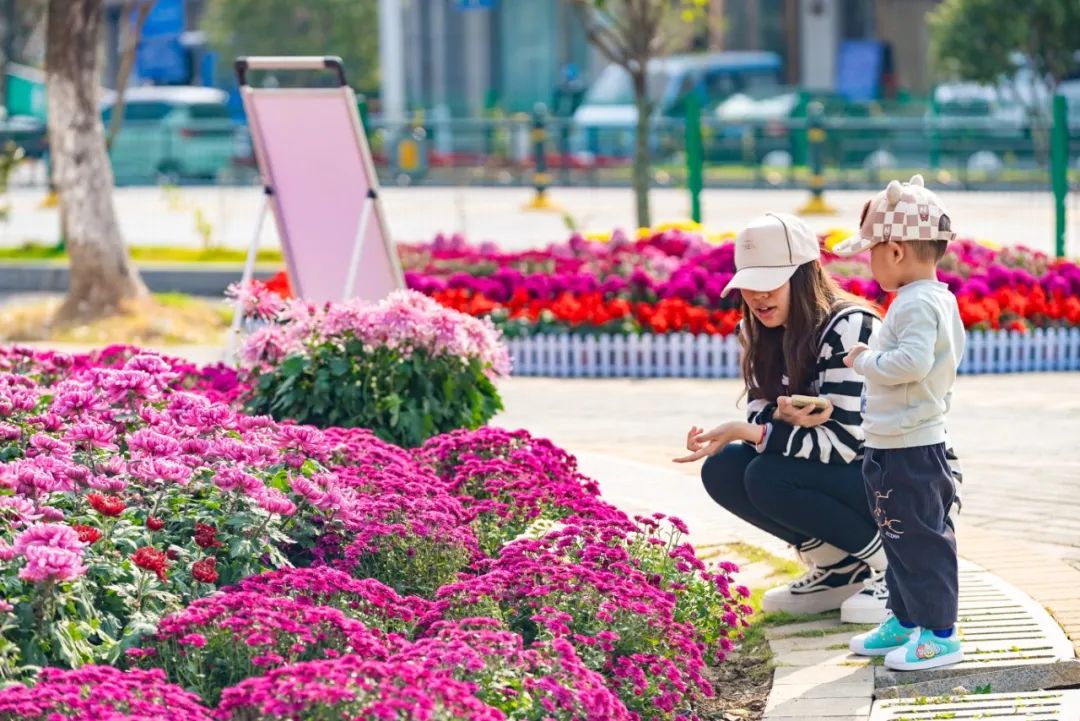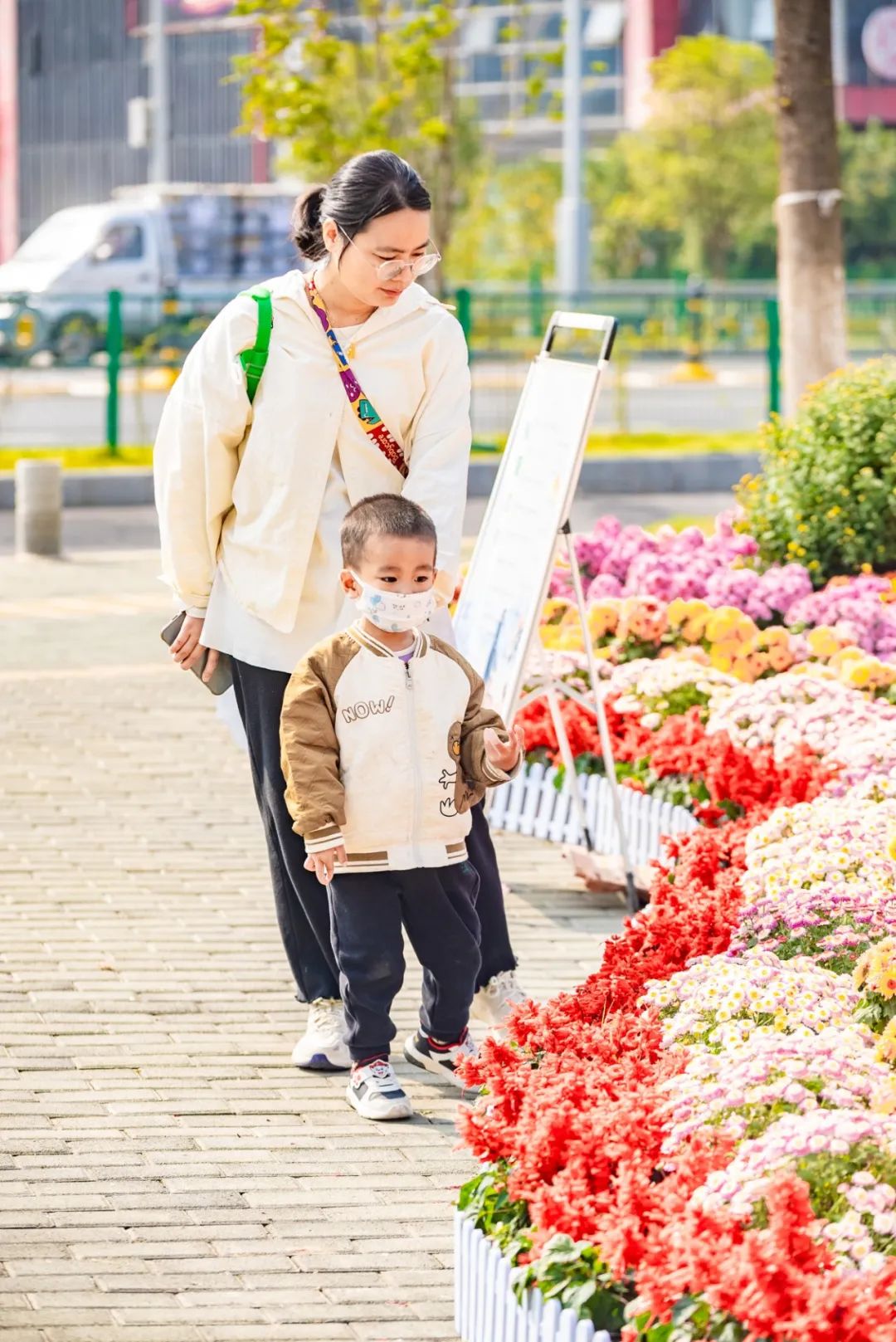 蔡甸广场向来是市民游客休闲、游览的好去处,菊花展开幕后,往来休闲赏花、拍照打卡、休闲遛娃的市民游客更是络绎不绝。