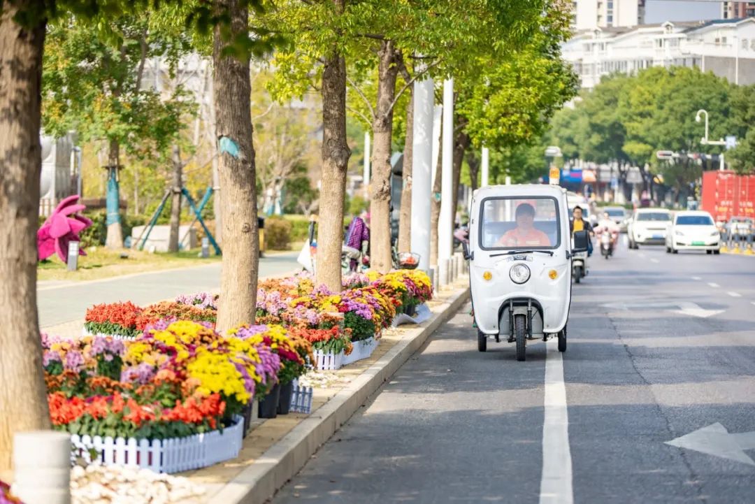 针对菊花展期间较为突出的非机动车辆乱停乱放问题。蔡甸城管门前三包督导员展开全天候巡逻,对蔡甸广场周边非机动车辆乱停乱放行为进行劝诫引导,提醒市民游客有序停放,不占用盲道,保障道路畅通。