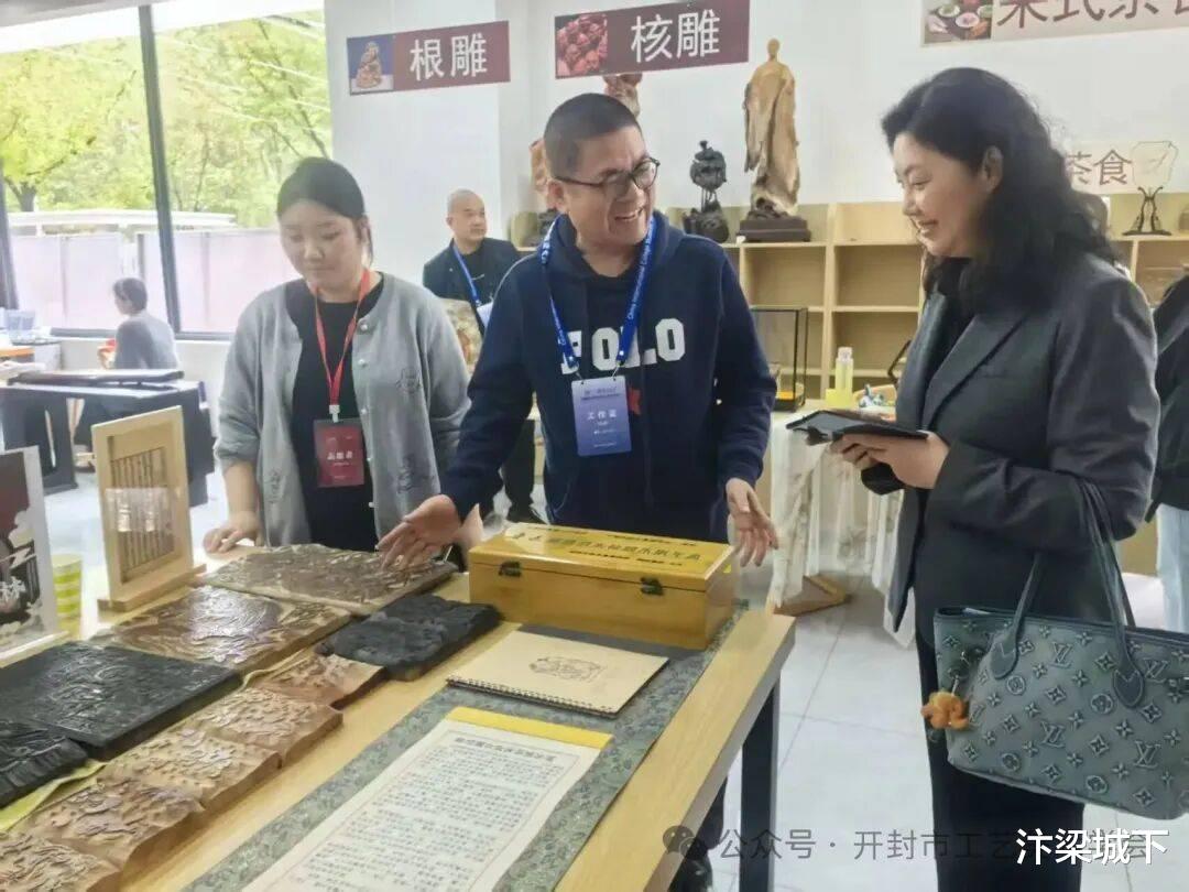 展示现场汇聚了来自全省各地的非遗及工艺美术精品。国家级非遗张俊涛灯笼、国家级非遗王红瑞浚县泥咕咕、省级非遗张军银饰、张艳香包、市级非遗汤红伟汤氏古琴、魏冬梅汴绣、郭自敏郭氏砖雕、木版年画任涛、宋文化复制漆器季应钦、手鞠球吴书涵、宋式茶食马海燕等非遗和工艺美术项目集中亮相。