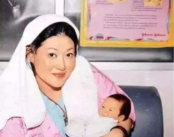 照片中的她,眼神温柔,小心翼翼地抱着孩子,尽显慈母本色。